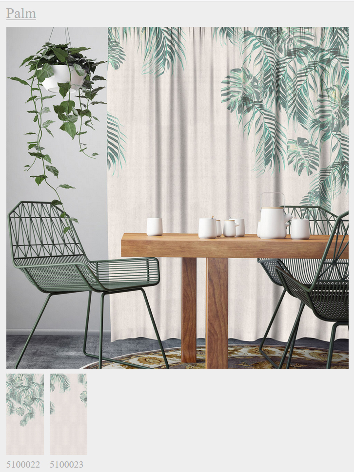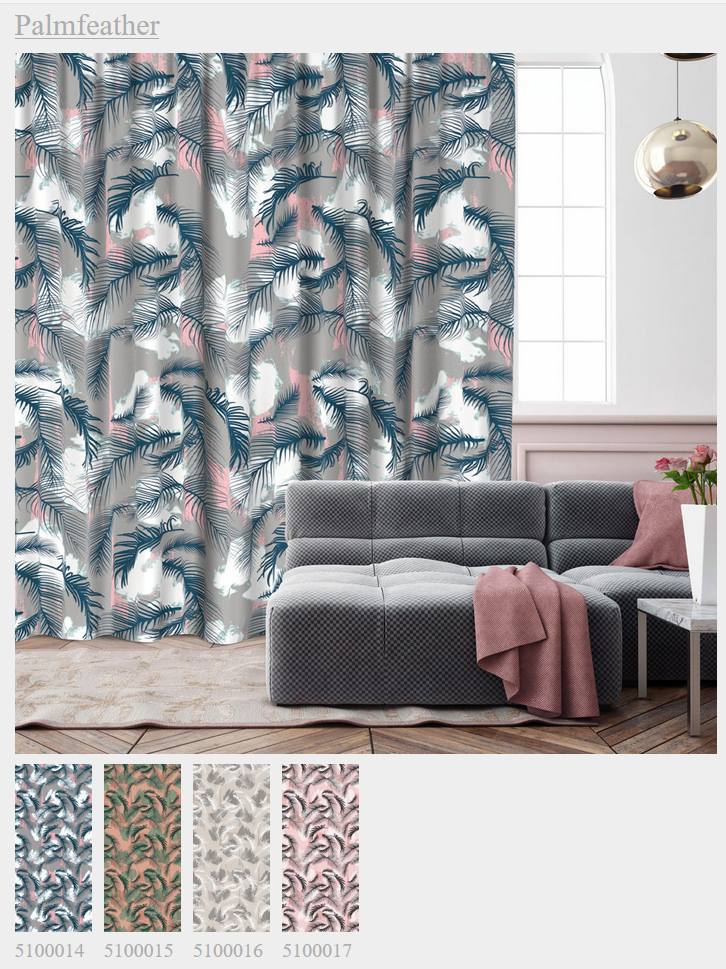 Также есть палета с дюжиной разных тканей: прозрачный шифон, стандартное плетение, софт, холст, димаут, холст-дим-аут, 100% блэкаут, а также негорючие ткани, которые можно использовать в коммерческих интерьерах. На любой из них можно напечатать понравившееся вам изображение. В зависимости от структуры материала, по-разному лягут краски и разным будет результат (в конце каталога представлены цветопробы).