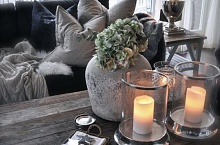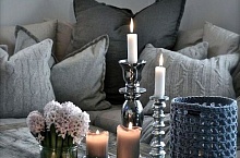 Используйте свечи для настоящего ощущения хюгге. Их живой мерцающий свет, конечно, самый красивый, он сразу приносит тепло и создает атмосферу в вашем доме. Выбирайте свечи, подходящие по цвету к текстилю и остальному интерьеру, а также добавьте ароматизированную свечку с зимним запахом (например, цитрусовый или коричный). Необычный подсвечник завершает картину (или дайте пустой бутылке вина вторую жизнь в качестве подсвечника).