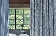 Тканини для штор та оббивок, які виготовляє Eijffinger, щільні, м'які, затишні. Якщо ви вирішите пошити штори на замовлення з такого матеріалу, то отримаєте те, що захистить вас від вогкості осінніх дощів та зимової пітьми. До таких шторів покладаються м'які коти, гарячий чай із корицею та теплий вогонь свічок.