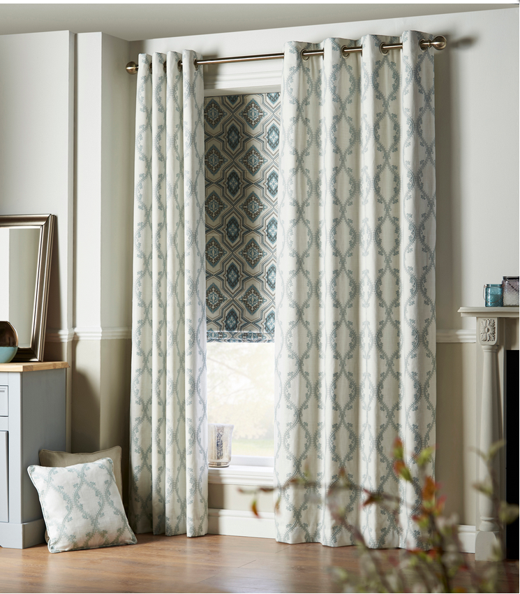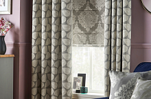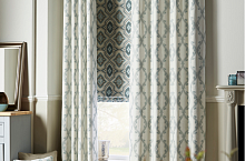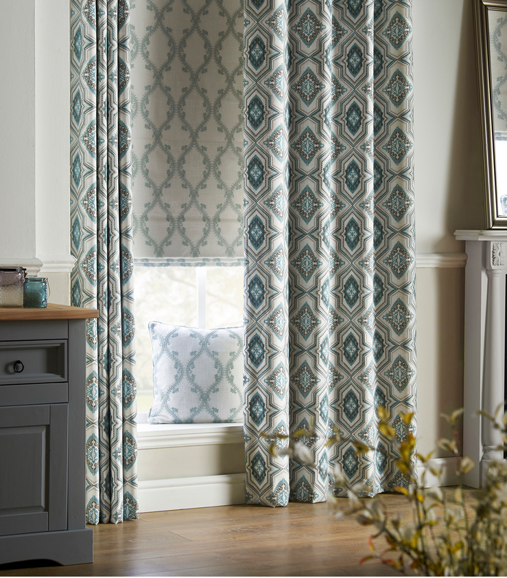– английская вариация этнических мотивов. Мы знаем, как всо найти портьерную ткань с «непошлым блеском», но Ahanti удалось создать хороший баланс. Основа у всех дизайнов – с матовым металлическим отблеском. На ней хлопковыми нитями выплетены прихотливые геометрические узоры: мандалы, ромбы, африканские решетки и мотивы мехенди. В составе есть непривычная для интерьерного текстиля лайкра, поэтому ткани из этого каталога нельзя стирать – только сдавать в химчистку. Зато благодаря лайкре портьеры легко выкладываются в пластичные, тяжелые, струящиеся складки. Если добавить к высоте 5-10 см, чтобы шторы вальяжно лежали на полу, эффект будет полным. Приглушенная, глубокая цветовая гамма понравится тем, кто ценит ощущение спокойствия и тишины.