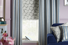 – ткани для штор и обивки, которые создадут атмосферу загородной дачи «с историей». На хлопковой ткани напечатаны акварельные цветы, неправильные полосы сот, узор-решетка, и легкие мазки кисти. Для коллекции выбрали мягкие, чистые и свежие цвета коралла, зеленого чая, туманно-синего, пыльной розы, бирюзы. Для полного покоя добавьте мятный чай со свежей малиной, песнь сверчков, запах ночной фиалки и опушку леса в пределах видимости. Но если опушки леса рядом нет, можно просто прийти к себе домой, задернуть шторы, сесть на мягкий диван – и отдохнуть от безумной киевской суеты.