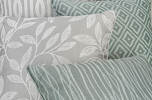 – история про лето в городе. Жаккардовые ткани для традиционного интерьера. Крупный вензель и компаньон-полоса идеально впишутся в нео-классику. Излишнюю серьезность разбавят неформальные дизайны: с тополиной листвой и луговыми цветами. Велюр с крупным ромбом и лен с объемной вышивкой можно использовать для обивки мебели и подушек.